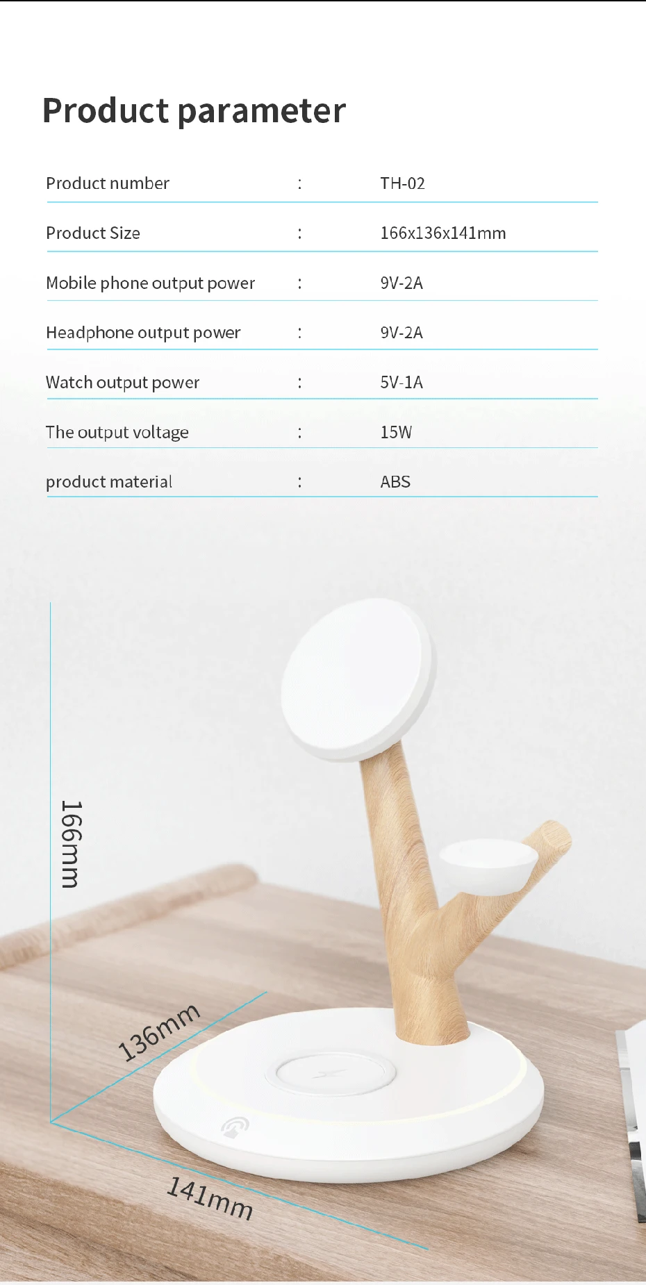 3in1 Magnetic Wireless Charger Stand for iPhone, Apple Watch and Airpods