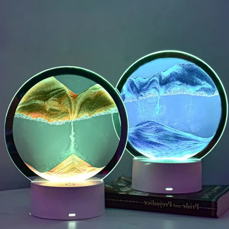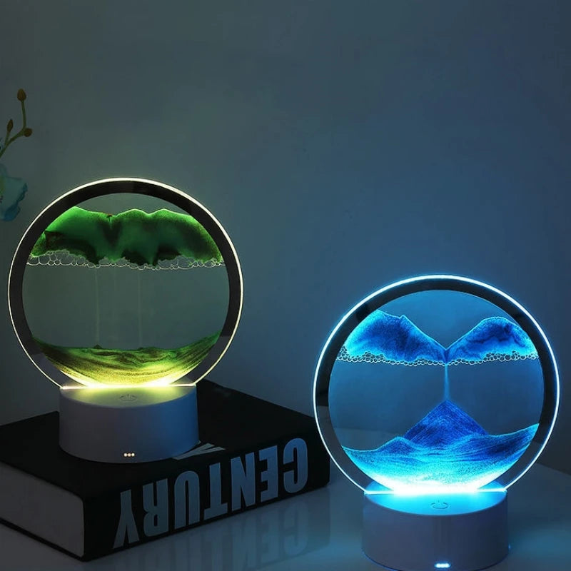 [360° rotating unique design]: 3D sand glass lamp can rotate 360° and change sides at any time. The entire sand removal device is under your control. Every time the delicate quicksand is flipped, the picture will change. You can remove the upper part of the hourglass body, flip it over and reinsert the bottom, and the painting of the hourglass will be redrawn. Different sands have different weights and the falling of quicksand forms a fascinating picture.