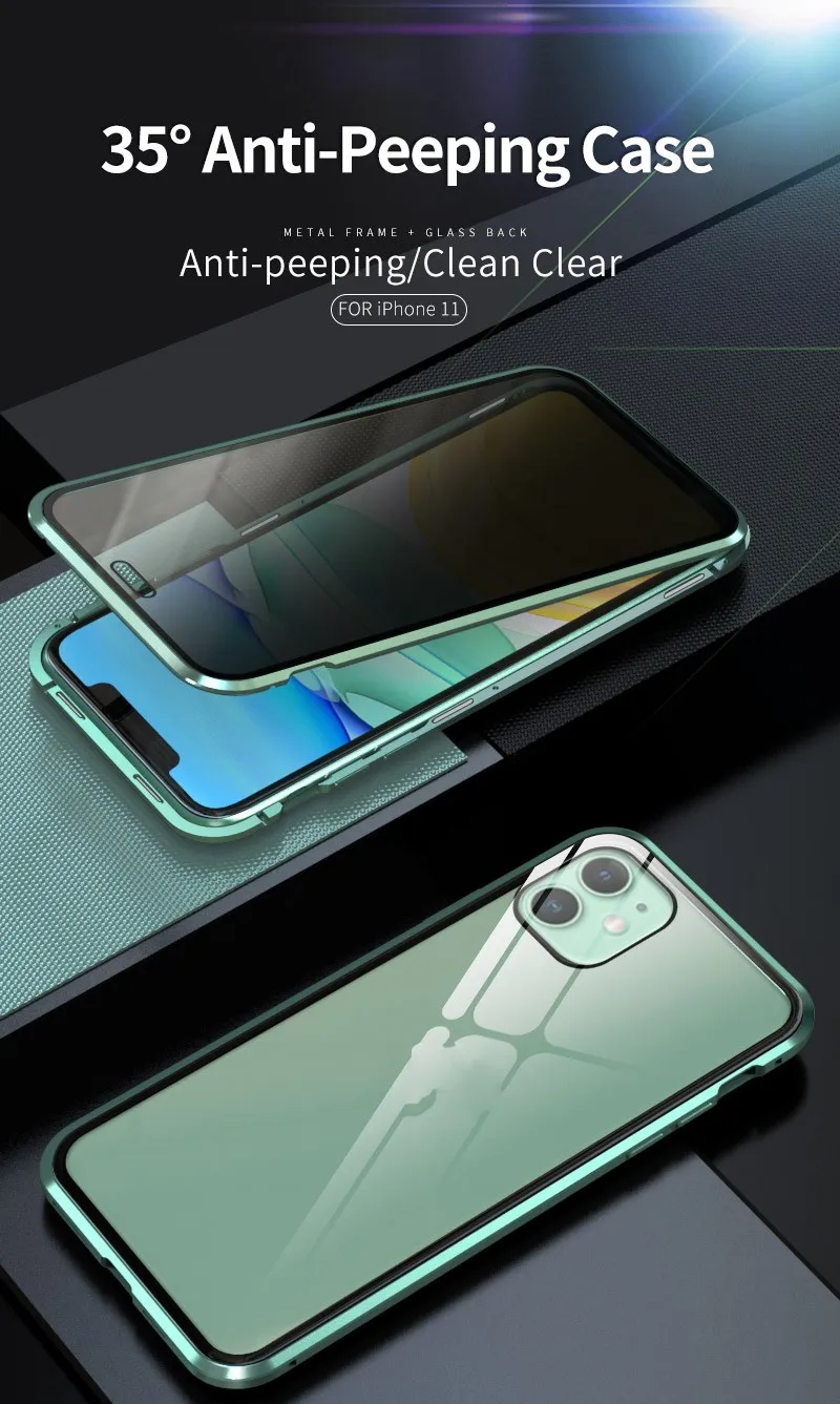 Tempered Privacy Glass Magnetic Case for iPhone 11 Pro Max XS MAX XR X 8 7 13 14 Plus XE